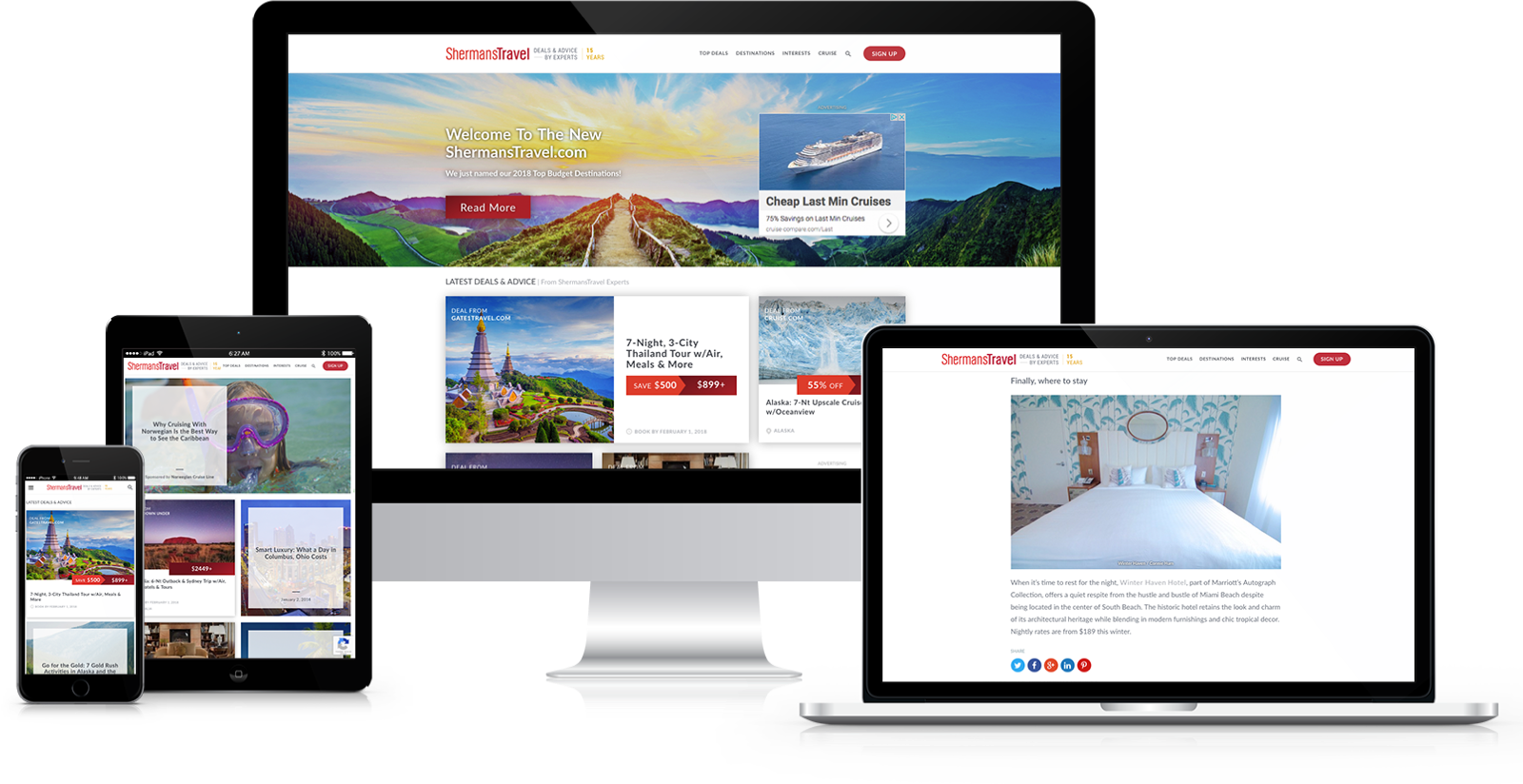 We helped NYC-based ShermansTravel, a leading publisher of travel deals and vacation destination advice, migrate their high-traffic site from PHP to Rails. With much improved performance and scalability, the site contributes more than ever to the bottom line. We continue to partner with ShermansTravel as they grow their business. Recently we also redesigned all the site and navigation.