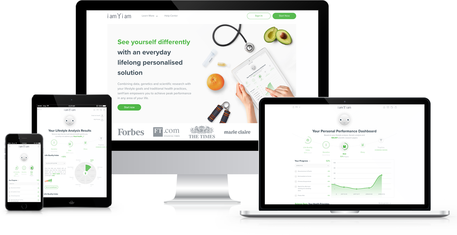 IamYiam is a platform working on a responsive environment to connect natural health practices with people's genetic needs. It covers the practitioner's business management needs and a website platform where people can know more about their genetic profile and book the practitioner's services combining their genetic needs with their goals.